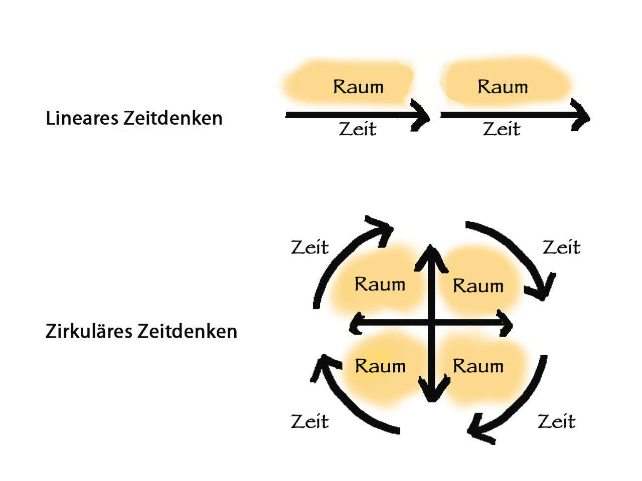 Das zirkuläre Denken ist in eher kollektivistisch orientierten oder traditionellen Gesellschaften beheimatet. Im System der Großfamilie, wie sie in Afrika noch immer vorherrscht, hat die Gemeinschaft und damit ein ganz anderes Zeitverständnis einen hohen Stellenwert.